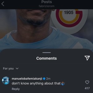 04 03月 2026 89 啥情况?阿坎吉在罗马诺动态下评论:我不知道自己要转会了 早些时候罗马诺报道称,加拉塔萨雷即将与曼城就阿坎吉的永久转会达成协议,双方已谈妥1500万英镑的转会费用,但阿坎吉在罗马... 英超