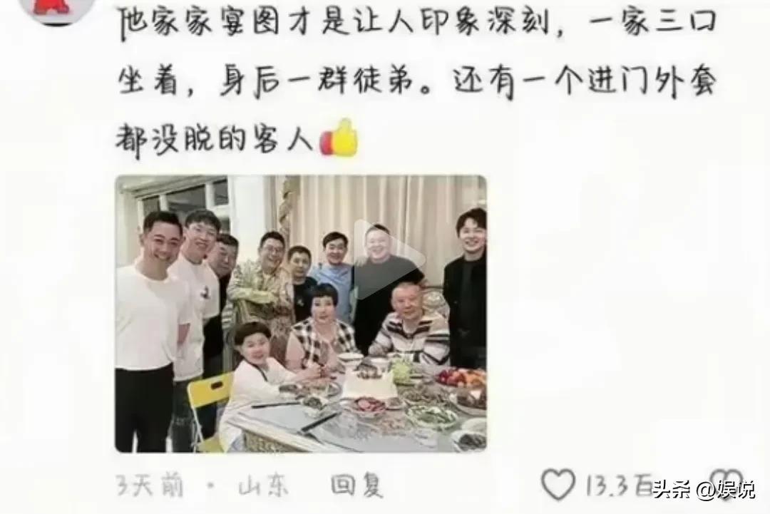 就在这个时候,有人发出了郭德纲的家宴图,里面出现的人物除了郭德纲一家四口,还有几个郭德纲的爱徒